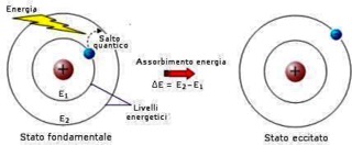 Nella meccanica quantistica nell’atomo gli elettroni sono vincolati dalla forza elettrica,e orbitano intorno al nucleo solo in orbite discrete cioè per passare da un anello all’altro è necessario un salto